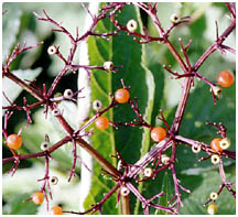 (4) 果実は小粒状で赤く熟します。