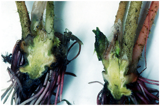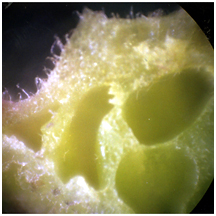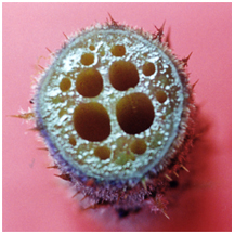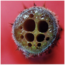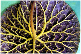 葉の裏面は濃い紫色で葉脈はふくれ、するどい刺があります。