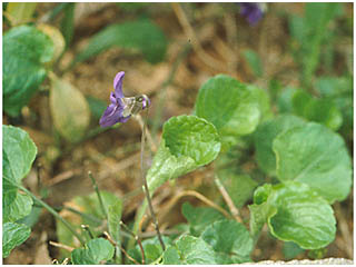 よく庭に植えてあるスミレを見たことがあるでしょう。根元の茎から「はう枝(ほふく茎)」を出してよく広がっていますね。これがニオイスミレです。