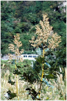 - 兵庫県西播磨の一部地域ではオオカメダンジというそうです。葉が大きなカメに似ていること、ダンジはイタドリのことで出た芽はすくすく伸び草丈が高くなることからついた名でしょう。