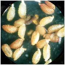 種子にはとげがあり、飛び出た後、ものにくっつきやすいようになっています。