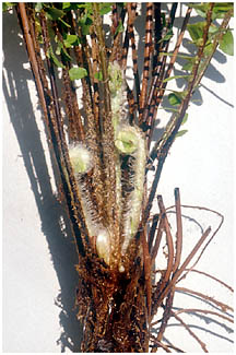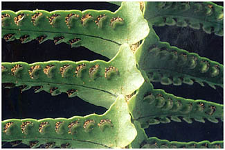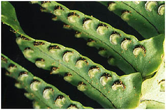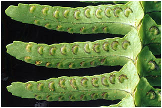 羽片前側は耳状をしています。波状のきょ歯があります。