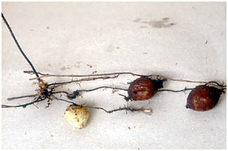 球状の1.5cmにもなるタマがつきます。球には鱗片がつきます。