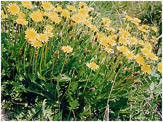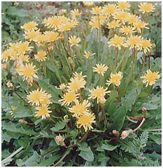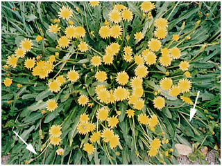 [花の軸をまっすぐに伸ばして咲くカンサイタンポポ]