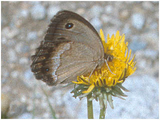 セイヨウタンポポは昆虫などが花粉を運ばなくても種子ができます。それでも、チョウが花のみつを吸いに来ています。