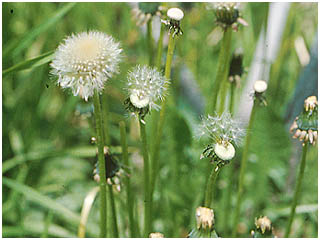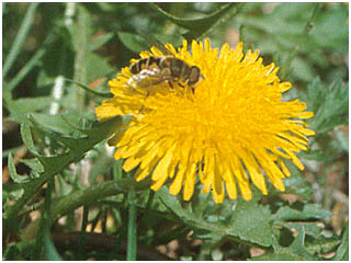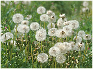 この絵ではみつを吸いに来ている昆虫が描かれていますが、セイヨウタンポポは、昆虫などの力を借りて受精しなくても種子ができる、「単為生殖」を行います。 |