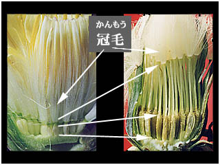 がくは冠毛と呼ばれ、風を利用して種子を飛ばすのに役立ちます。
