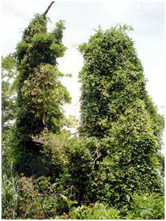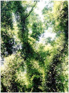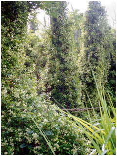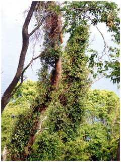 テイカカヅラは海に近い林の中でも、勢いよく育っています。瀬戸内海の島々でも見られます。
