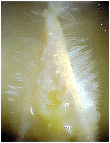 やくには毛のある糸状の付属物がつき、