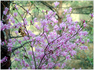 | 1.春の山ろくを飾るコバノミツバツツジ |