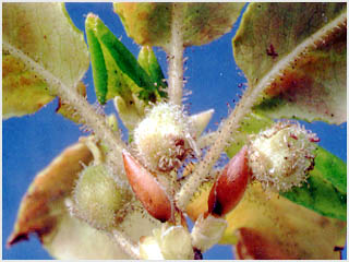 - 花は5,6月で、葉をつける枝が伸びてから咲きます。