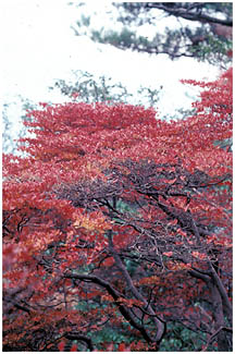 | [右2枚:ベニドウダンツツジの紅葉、1981.11.3.] |