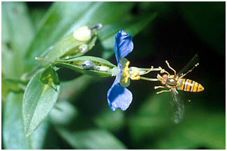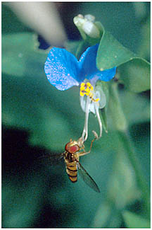 - ツユクサの花はみつを出しません。では何を求めて虫は集まるのでしょうか。花粉です。