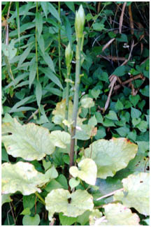 - 茎は緑色で太く、直立します。花穂がのびると1−1.5mにもなります。