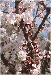 - 白や赤の花があります。八重の花の咲いた木もたくさんあります。