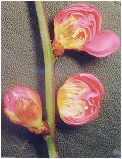 - 花びらは5枚(5花弁)、がくも5枚あります。(5という数を基本にした五数花)