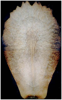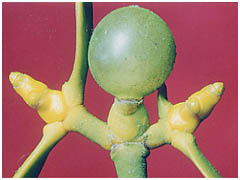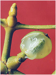 実をつぶすと、とりもちのようにねばねばしています。このねばねばは糸を引いたようになります。