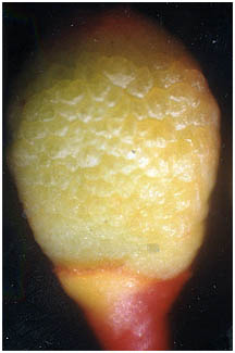 液果は小さく、径5mmで、球状をしています。次の年の春に赤く熟します。