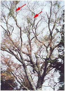 [上2枚:ブナにつくアカミヤドリギ、右:2000.11.14.] |