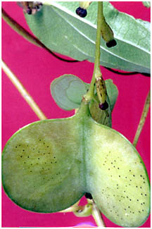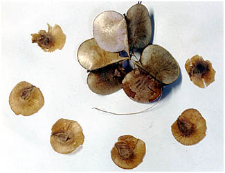 種子は、熟すと果実の壁がはがれます。へん平な種子です。種子の周りに薄いひれがあって、風で散布されます。