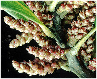 - おばなは3月から4月にかけて、葉腋に1.5−2.5cmの尾状花穂をつけ咲かせます。