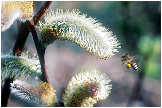 [ネコヤナギとハチ、西区神出町、1982.3.13.]