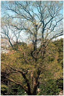 葉は広いだ円形。葉の出るときは紅褐色です。
