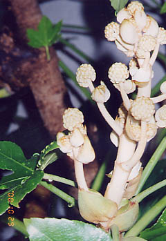咲くまでの花は、大きくて白いものにつつまれています。これを「