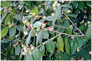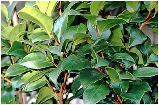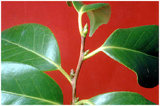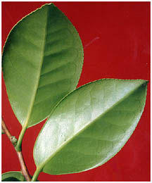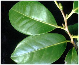します。革質で光沢があります。また、長だ円形で先端、基部ともにとがっています。