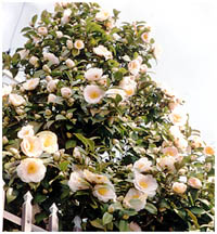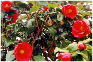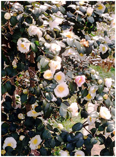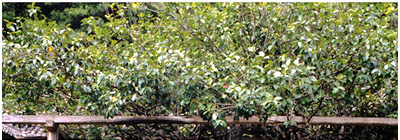 ツバキ寺 : 開花時には1日に何千という花が咲くようです。横に長く伸びています。 |