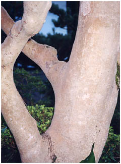 [おもしろい枝ぶりのサザンカ、京都府久美浜、2001.10.18.]