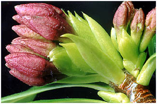 - がくの外側は紅紫色、内側はわずかに赤みを帯びた白をしています。