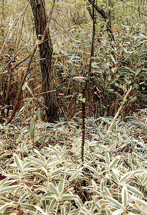 ミヤコザサ(手前)とスズタケ(奥)(6月)