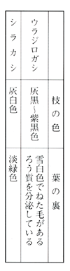ウラジロガシは、葉の裏が白く、シラカシは材が白いのでこう呼ばれています。しかし両種は区別がつきにくいものです。葉の形は、典型的なものでは、ウラジロカシの葉は薄く、少しちぢれ、シラカシはやや厚いので区別はつきますが、山でみると、生えている環境によって、いくらか変形しますので、ややこしくなります。