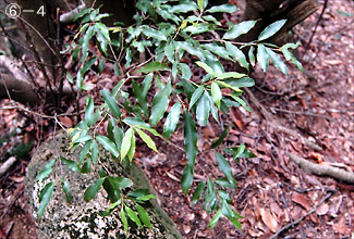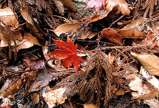 (6)-2:アカガシ・スギ・イロハカエデの落葉。落葉で生えている植物がわかる。