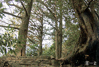 (8)-2:ここのツゲのほとんどの枝が南側だけに伸びており、日光を受ける。