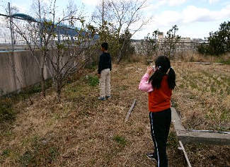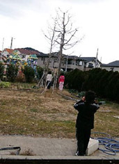 | 友達に立ってもらうとだいたいの木の大きさがわかります。 | ||