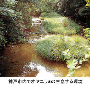 神戸市内のオヤニラミは六甲山地の一河川にすんでいる。これは放流されたものである。この場所はフェンスがあり、確認しにくいがヨシノボリも多数生息し餌にはこまらない。しかしオヤニラミが定着しつづけるためには難問がある。