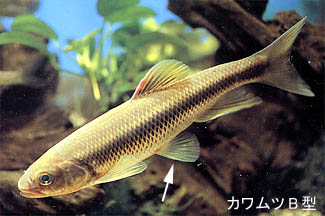 カワムツには、最近形態や遺伝的に違いが見られることが分かってきて、濃尾平野から瀬戸内海沿岸の河川下流域及び、湖沼沿岸に分布するものをA型、それ以外に生息するものをB型と呼ぶようになりました。
