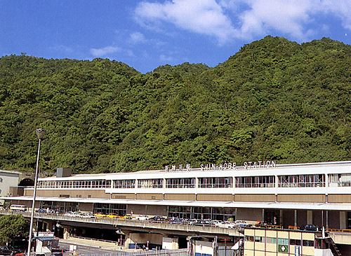 港町神戸にふさわしく船をかたどった設計の新神戸駅。ここから雄滝までは峡谷と照葉樹林がつづきます。