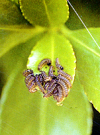 れ下がり難をのがれるくせがあります。5月の終りには蛹となり長い夏を蛹のままで過ごし、秋も深まるころに