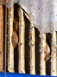 淡黄色の粟つぶほどの卵を産みつけ、自分の体毛を抜いてかぶせている。冬の寒さもこれでOK。