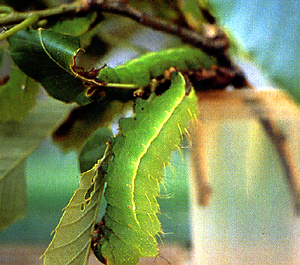 幼虫は大食漢だ。1枚40cm²ほどのアベマキの葉を一昼夜で2枚半もたべる勢い。