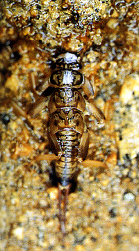 体がこれよワ小さく、だ円形をしたシマアメンボは、渓流にのみすむ。 |