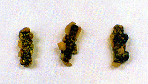 小石や砂粒をつづりあわせた筒巣の中に幼虫がすむ。はじめて見る人なら砂のかたまりが動くのでびっくりするだろう。 |