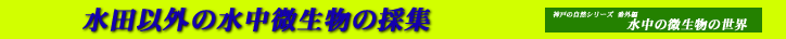 私たちの研究会では、水田以外の微生物の採集場所について、実際に採集に出かけ、教材の収集場所としての可能性をさぐってみました。ここのその結果をレポートします。水田が近くにない学校などでの参考にしてください。