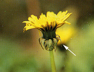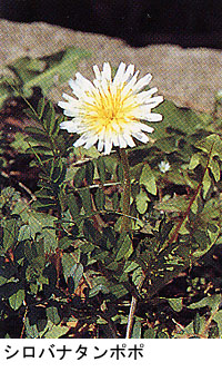たくさんの種類はありますが、どれもみんな総包片が返らないで上むきについています。シロバナタンポポの花は白色です。 |