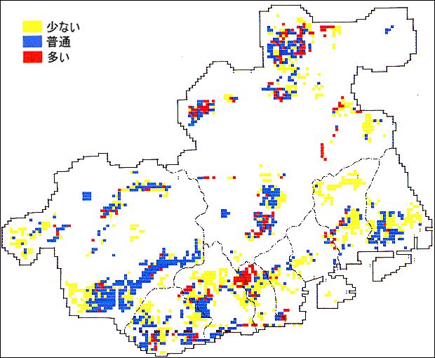 夏の朝、しっとりと露を含んで涼しげなツユクサの姿は愛らしさを感じます。道ばたや庭の隅などに見かける一年草の花で、梅雨のころから夏の終わりまで咲きつづけています。ツユクサは教材として利用度の高い植物なので、どの程度の分布状況か楽しみでしたが、予想以上の広い範囲に分布しているのが確かめられました。