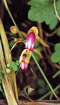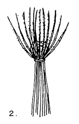 茎の先に大きな花穂をつけ、花穂は細長い短い枝に分かれ、全体に黄褐色か紫がかった褐色をしています。