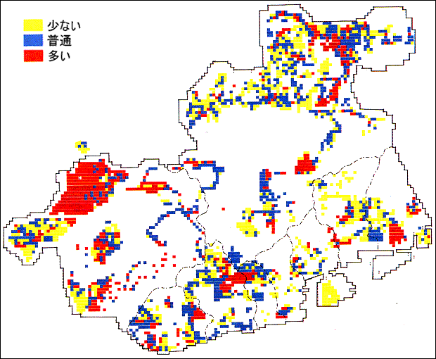住宅地域の空き地、休耕田、大規模造成地、道路ぎわの草地などそのほか小川や溝などの地下水分の多いところにも多く生えています。特に目立ったのは、造成地などで、表土をひっくり返してできた新しい土地への進出が非常に速いことと、その逆によく手入れの行き届いた宅地などには全く見られないことです。